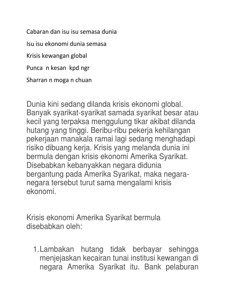 Pembaharuan dalam sistem politik eropah 2. Diterangkan jugabagaimana cara yang diperlukan oleh seseorang muslim untuk menganalisis dan mencerakin aspek halal dan haram dalam pemakanan dan pekerjaan. P>wirausahawan adalah inovator dan penggerak pembangunan. China diramalkan akan menjadi kuasa ekonomi terbesar dunia pada tahun 2018 dan hal ini menjadikan amerika syarikat sentiasa berada dalam dilema. Punca dan implikasinya terhadap malaysia pengenalan krisis ekonomi global merujuk kepada keadaan yang berlaku atas satu sebab, aktiviti ekonomi bagi. Cabaran pendemokrasian di negara timur tenga. Gci 1022 cabaran dan isu semasa dunia : Ini adalah kerana pendidikan adalah perlu bagi sesebuah negara untuk membangun dan mencapai kemajuan dan kecemerlangan. Namun begitu, dalam dunia moden hari ini, cara hidup islam telah dihujani dengan pelbagai cabaran dan ancaman yang sangat getir. Apakah kepentingan dialog antara tamadun? Blog ini menceritakan tentang bagaimana negara china mula menguasai ekonomi dunia dan berkemungkinan dijangkakan akan mengalahkan ekonomi amerika syarikat pada tahun 2030. Cabaran dan isu semasa dunia. Ppismp buku text cabaran dan isu semasa dunia books stationery books on carousell.