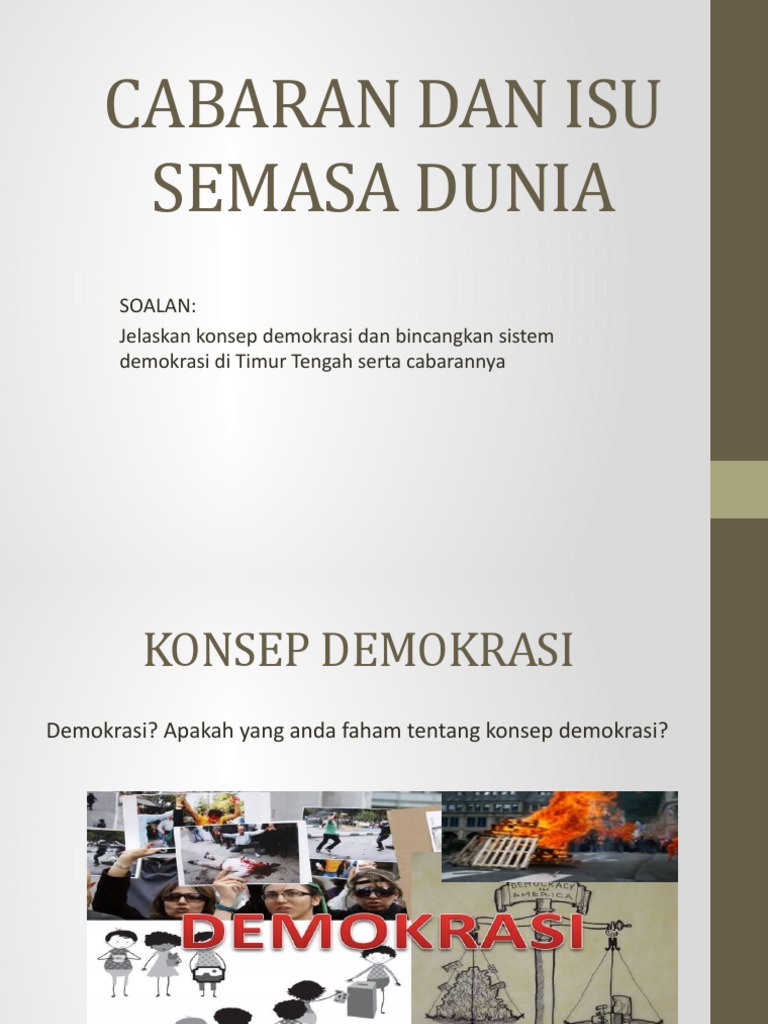 Cabaran Dan Isu Semasa Dunia Pptx from reader017.dokumen.tips Ini adalah kerana pendidikan adalah perlu bagi sesebuah negara untuk membangun dan mencapai kemajuan dan kecemerlangan. Walau bagaimanapun, cabaran dan halangan tidak mematahkan semangat saya. Namun begitu, dalam dunia moden hari ini, cara hidup islam telah dihujani dengan pelbagai cabaran dan ancaman yang sangat getir. Once your powtoon is ready to be downloaded we'll send you an email. Wirausahawan memiliki peranan penting dalam meningkatkan pembangunan suatu negara. Cabaran dan isu semasa dunia gci 1022. Cabaran dan isu semasa dunia. Isu politik dunia semasa :