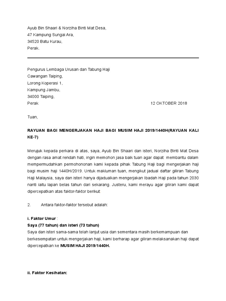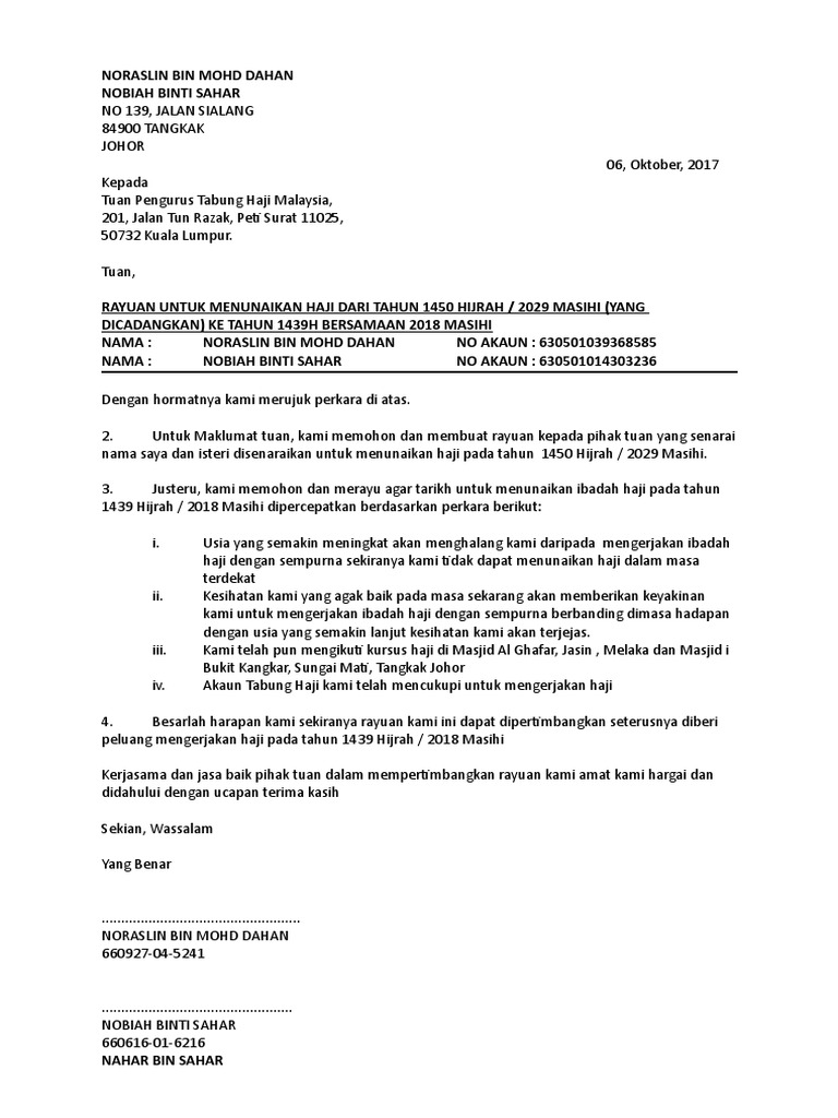 Lelaki Ini Kongsi Format Surat Rayuan Haji Tular Sehingga Dapat Lebih 12k Perkongsian Keluarga from cdn.keluarga.my Perlukah isi borang rayuan jika pernah hantar surat rayuan? Dengan laman web ini, pendeposit boleh menyemak akaun, mencetak penyata akaun atau membuat pindahan wang. Rayuan haji boleh dibuat sekarang! Permohonan rayuan haji 2020/ 1441h muat turun borang rayuan via www.permohonan.my. Arabic صندوق الحج) is the malaysian hajj pilgrims fund board. Semoga pihak tabung haji dapat menunaikan rayuan saya yang tersebut di atas. Lembaga tabung haji (malay jawi: Surat rayuan haji yang telah diterima dan diserahkan kepada tabung haji sebelum ini akan tetap diproses dan dipertimbangkan dalam proses pemilihan jemaah haji.